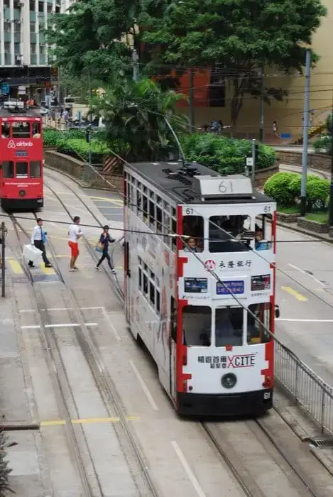 Bandar ini juga mempunyai rangkaian trem dua tingkat yang luas yang sering dirujuk sebagai ding ding dalam bahasa Kantonis. Menunggang ini dan duduk di tingkat atas adalah cara terbaik untuk melihat bandar dengan murah.